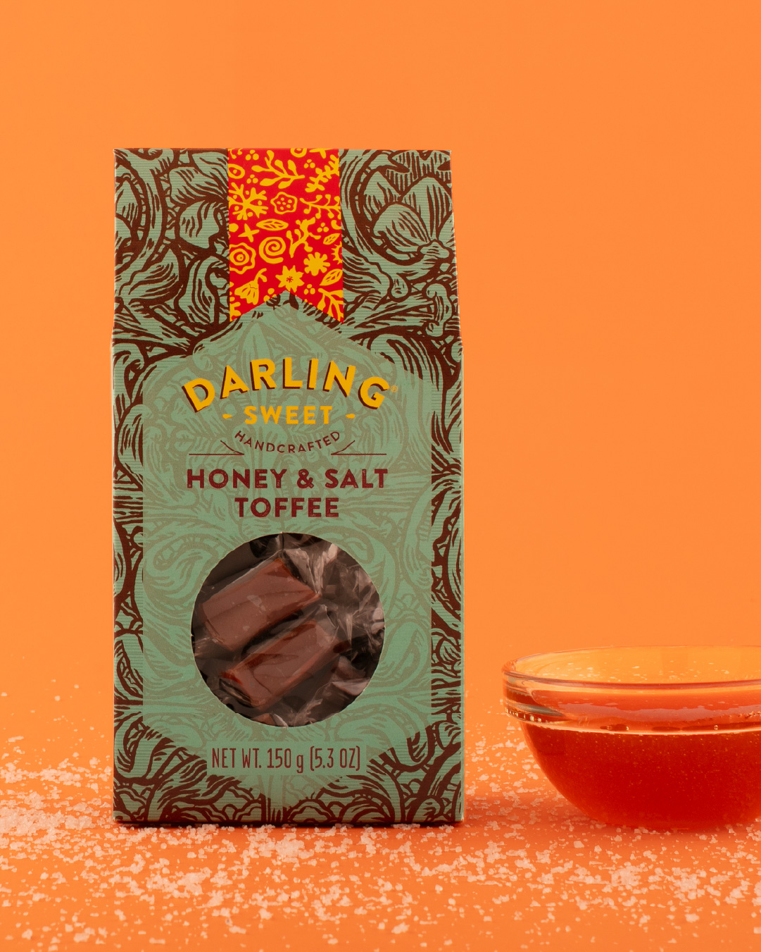 Experience a tantalizing treat with Darling Sweet Honey Salt Toffee. Our signature butter-caramel toffee is infused with the delicate scent of local veld flower honey and balanced with a satisfying crunch of fleur de sel. This delightful 150g toffee is a perfect blend of rich, sweet, and savory flavors.