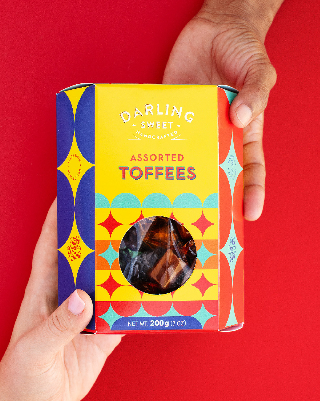 Treat yourself or someone special to Darling Sweet’s 200g Assorted Toffees, featuring a selection of beloved flavours: Tannie Evita’s Classic Toffee, Honey & Salt Toffee, Liquorice Toffee, and Chocolate Toffee.