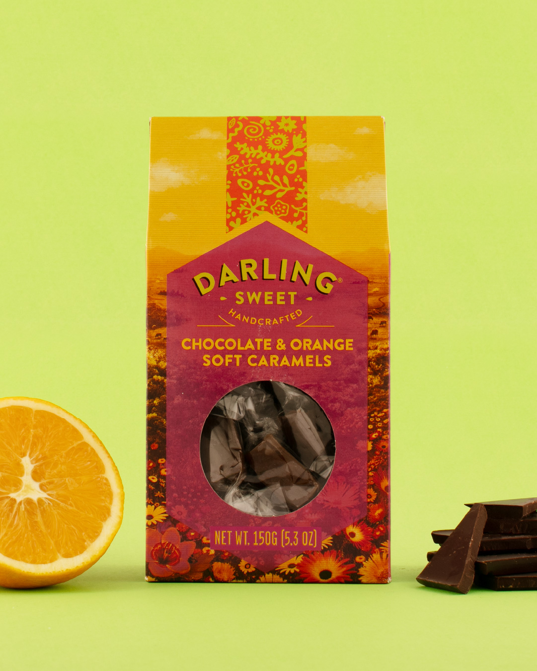 Indulge in a classic flavor combination with our chocolate and orange soft caramels. We’ve perfectly blended the rich, velvety intensity of chocolate with the bright, fruity essence of oranges into our signature, buttery soft caramel.