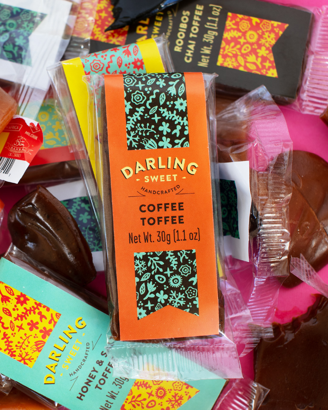 | 30g x 30 Toffee Bars Display Unit (1st Selection) | Mixed Box 3x30g toffee bars of each flavour x 30, Bird’s Eye Chili Toffee Bars x 30, Chocolate Flavoured Toffee Bars x 30, Coffee Toffee Bars x 30, Ginger Snap Toffee Bars x 30, Honey & Salt Toffee Bars x 30, Liquorice Toffee Bars x 30, Mint Toffee Bars x 30, Orange & Cranberry Toffee Bars x 30, Rooibos Chai Toffee Bars x 30, Tannie Evita’s Classic Toffee Bars x 30 |